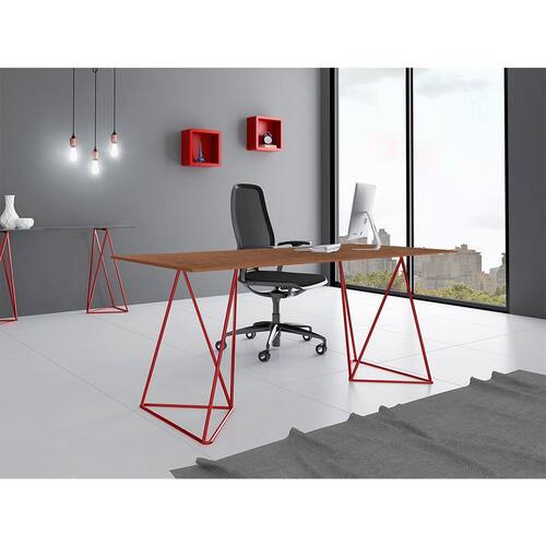 Escrivaninha Bela Vista Cavalete Tampo Imbuia Base Ferro Vermelho Com a Mesa Cavalete Bela Vista seu escritório ficará muito mais moderno. Trazemos produtos com a máxima qualidade em materiais e com o design inovador.