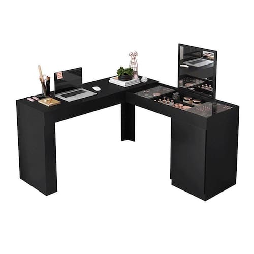Escrivaninha Canto Penteadeira Star com Vidros de Correr - Preto