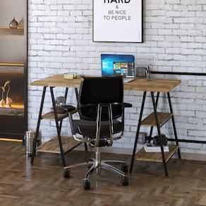 A Mesa Cavalete KUMC6135 Kuadra é um produto prático e versátil, que pode ser utilizado em diversos ambientes, como quarto e escritório, na sala, cozinha ou seu depósito. Conta com 04 prateleiras reforçadas e seu design industrial permite diversas composições de decoração com os demais módulos da linha. Acabamento da Prateleira: BP Acabamento dos Pés: Pintura Ambiente Principal: Escritório Complexidade da Montagem: Média: pode ser montado por mais de uma pessoa e/ou necessite de maior conhecimento para montagem Cor: Carvalho Cor da Base: Preto Cor do Produto: Carvalho Cor do Tampo: Marrom Cor Interna: Carvalho Escala de Brilho: Fosco Escala de Brilho da Prateleira: Fosco Espessura do Tampo: 30 Formato: Retangular Itens Inclusos: 1 Escrivaninha, Kit Ferragens e Manual de Montagem Linha ou Coleção: Kuadra Manual de Montagem e Instalação: https://cdn2.madeiramadeira.com.br/atributo/compace-dalex/1258769-manual-novo-cavalete.pdf Material da Prateleira: MDP Material dos Pés: Aço Material Principal: MDP Necessita Montagem: Sim Origem do Produto: Nacional Pés com Regulagem de Altura: Sim Pés Reguláveis: Sim Peso: 24.89 Peso Máximo por Prateleira: 5 Possui Passa Cabos: Não Possui Portas: Não Possui Prateleiras: 04 Possui suporte para CPU: Não Possui Suporte para Teclado: Não Recomendações de Uso, Manutenção e Limpeza: Para a limpeza, utilize flanela seca ou pano macio levemente umedecido em água. Utilize um pano seco em seguida. Evite contato com produtos químicos (solventes, thinner, acetona, etc) e não utilize nenhum tipo de esponja de aço. Sapatas Niveladoras: Sim Sistema de Montagem: Parafusos, bucha e sapatas niveladoras Suporta Até (kg): 50