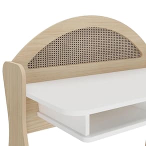 Transforme seu espaço em um refúgio de inspiração com a bela Escrivaninha Ceci. Seu design delicado e encantador com traços curvos, aliado a detalhes cuidadosamente pensados, combina perfeitamente funcionalidade e estilo. O destaque do visual está no charmoso painel arredondado com pintura 3D no acabamento palha, que proporciona uma estética única e agradável. Além da beleza, a Escrivaninha Ceci oferece praticidade: dois nichos estrategicamente posicionados fornecem espaço adicional para organizar livros e materias, mantendo tudo a fácil alcance das mãos. Seja para trabalho, estudo, ou como penteadeira, esta graciosa mesa eleva instantaneamente a estética do seu ambiente!