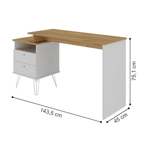 Ela é indicada para Escritórios ou Quartos. Feito com um resistente tampo de MDP 18mm, possui duas gavetas com puxadores coleira: discreto, moderno e prático.