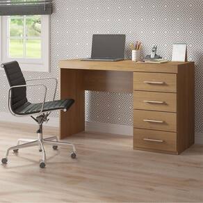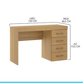Escrivaninha Com 4 Gavetas 120x75cm Mdp Carvalho Menu Móveis Carvalho A Mesa Escrivaninha e um movel util e versatil que promete ser o protagonista do seu ambiente. Dispoe de um design atual que facilita na hora de montar a decoracao, proporcionando um espaco mais aconchegante e organizado. Possui tampo espacoso e quatro gavetas para armazenar seu material de uso diario. A mesa escrivaninha e produzido com materiais de excelente qualidade, garantindo a sua durabilidade. O melhor em moveis no design atual aliando conforto, qualidade e otimos precos, so na Menu Moveis! Caracteristicas: Referencia: 0711 Material: MDP de 15 mm Acabamento: Pintura UV na cor Carvalho Dakar Gavetas: 04 Gavetas com Corredica Metalica Puxador Alca em ABS na cor Bronze
