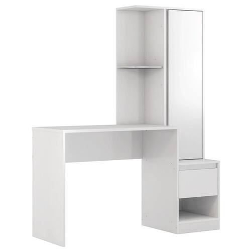 Seu armário possui divisões bem distribuídas que acompanha uma porta, prateleiras, nicho e uma gaveta para guardar os pertences e objetos que mais utiliza, para deixar ainda mais perfeito acompanha uma mesa de acoplada com amplo espaço no seu tampo para colocar ou ajudando no dia a dia.