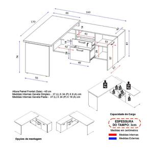Conteúdo da Embalagem: 1 (uma) Escrivaninha com Balcão Manual de Montagem Kit Ferragem