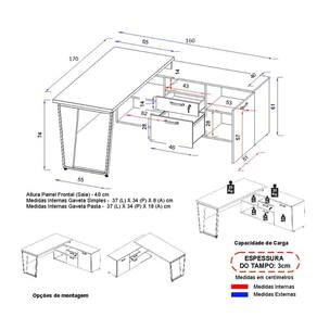 Conteúdo da Embalagem: 1 (uma) Escrivaninha com Balcão Manual de Montagem Kit Ferragem