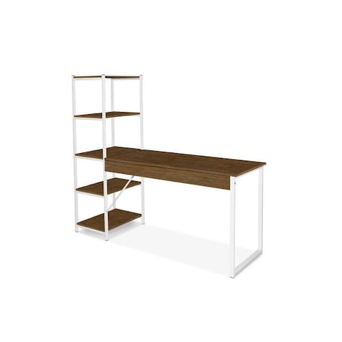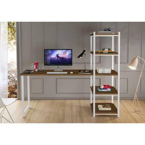 Escrivaninha para estudo e escritório com prateleiras estilo industrial decorativo, ideal para qualquer ambiente, deixando o espaço mais moderno e prático. Produto em aço carbono com pintura em pó e tampos em MDP com pintura UV.