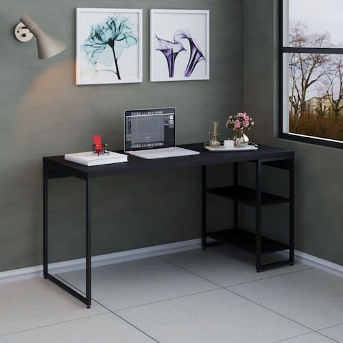 A Mesa c/Estante Active ACEMB6150 é um produto prático e versátil, que pode ser utilizado em diversos ambientes, como quarto e escritório, na sala, cozinha ou seu depósito. Conta com estrutura em aço com pintura epóxi além de 02 prateleiras acopladas, deixando seus objetos mais organizados e ao alcance das mãos. Acabamento da Gaveta: Acabamento da Porta: Acabamento da Prateleira: BP Acabamento dos Pés: Altura dos Pés: Ambiente Principal: Escritório Complexidade da Montagem: Média: pode ser montado por mais de uma pessoa e/ou necessite de maior conhecimento para montagem Cor: Preto Onix Cor do Produto: Preto Ônix Cor Flex: Cor Interna: Preto Ônix Escala de Brilho: Fosco Escala de Brilho da Gaveta: Escala de Brilho da Porta: Escala de Brilho da Prateleira: Fosco Formato: Retangular Gaveta com Chave: Informações Complementares: Itens Inclusos: 1 Mesa, kit ferragens e manual de instruções. Largura Frontal: Largura Lateral: Linha ou Coleção: Active Manual de Especificação Técnica: Manual de Montagem e Instalação: https://cdn2.madeiramadeira.com.br/atributo/compace-dalex/994343-estante-mesa-baixa-manual-active.pdf Material da Gaveta: Material da Porta: Material da Prateleira: MDP Material do Puxador da Gaveta: Material do Puxador da Porta: Material dos Pés: Aço Material Principal: MDP Montagem Flex: Necessita Montagem: Sim Origem do Produto: Nacional Pés Reguláveis: Peso: 19.14 Peso Máximo por Gaveta: Peso Máximo por Prateleira: 8 Possui Passa Cabos: Não Possui Pés: 02 Possui Porta Objetos: Não Possui Portas: Não Possui Prateleiras: 02 Possui suporte para CPU: Possui Suporte para Teclado: Não Quantidade de Nichos: Recomendações de Uso, Manutenção e Limpeza: Para a limpeza, utilize flanela seca ou pano macio levemente umedecido em água. Utilize um pano seco em seguida. Evite contato com produtos químicos (solventes, thinner, acetona, etc) e não utilize nenhum tipo de esponja de aço. Rodízio com Trava: Sapatas Niveladoras: Sim Sistema de Montagem: Parafusos Suporta Até (kg): 46 Tipo de Corrediça da Gaveta: Tipo de Dobradiça/Corrediça da Porta: Tipo de Madeira Maciça: Tipo de Madeira Maciça da Gaveta: Tipo de Madeira Maciça da Porta: Tipo de Madeira Maciça da Prateleira: Tipo de Madeira Maciça do Puxador da Gaveta: Tipo de Madeira Maciça do Puxador da Porta: Tipo de Madeira Maciça dos Pés: Tipo de Puxador da Gaveta: Tipo de Puxador da Porta: