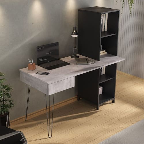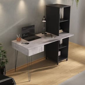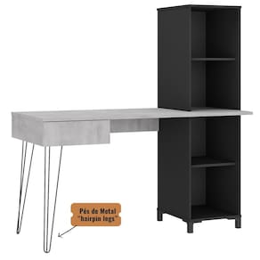 Escrivaninha com Estante e Gaveta Fusion Concreto/Preto - Durabilidade e resistência: materiais de alta qualidade.