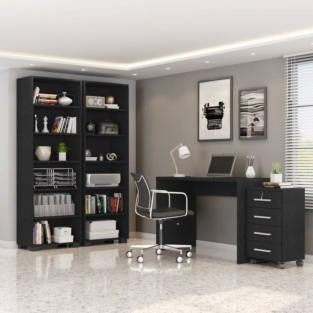 Kit 4 Peças com Escrivaninha, Gaveteiro e 2 Estantes Livreiros Preto