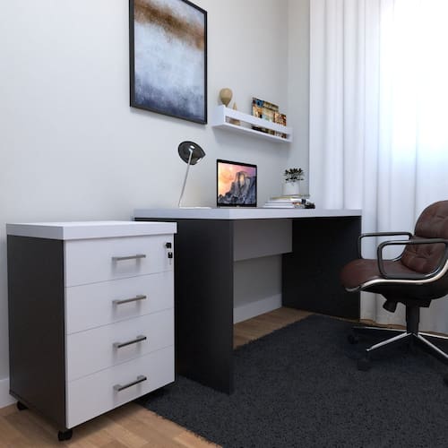 Nosso conjunto oferece uma mesa moderna com prateleira e gaveteiro espaçoso, perfeito para qualquer ambiente, seja em casa ou no escritório. Com design inteligente e funcional, ele mantém tudo ao seu alcance e sua mesa sempre organizada. Feita com materiais de alta qualidade e acabamento resistente a riscos, combina durabilidade com sofisticação, disponível em várias cores para se adaptar ao seu estilo. Diga adeus à bagunça e olá à produtividade! Ambiente Principal: Escritório codigo_ean: 7909903848692 Manual de Montagem e Instalação: https://product-hub-prd.madeiramadeira.com.br/917921/documents/302bc3d8-c3c8-4037-a8c0-15e8187a090b2077099522817189947533193.pdf Marca: Bramov Móveis Origem do Produto: Nacional Possui Armários: Não Possui Balcão: Não Possui Cadeira: Não Possui Estante: Não Possui Gaveteiro: 01 Possui Mesa de Reunião: Não Tipo de Conjunto de Escritório: Escrivaninha e Gaveteiro