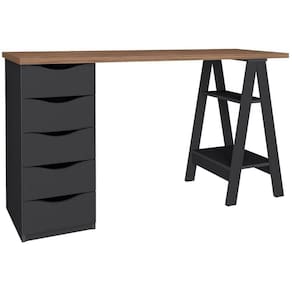 Escrivaninha com Gaveteiro Mesa Office Spirit II Nogal/Preto - Escrivaninha com Gaveteiro Mesa Office Spirit II