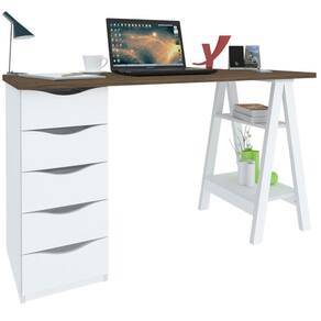 Escrivaninha com Gaveteiro Mesa Office Spirit II Nogal/Branco - Escrivaninha com Gaveteiro Mesa Office Spirit II