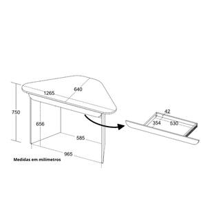 Características: 1 Gaveta com trilho telescópico Estrutura em MDP 15 mm de espessura com fita de borda ABS 0,45 mm de espessura Fixação com parafuso, cantoneira, tambor e minifix Sapatas plásticas para proteger o piso Tampo da mesa e laterais em MDP 18 mm de espessura com fita de borda ABS 1 mm de espessura Traseira revestida