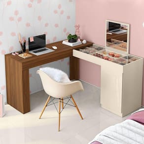 Descrição: Produzida em MDP, acabamento em pintura UV, com verniz texturizado fosco, vidros deslizantes, porta convecional com prateleira interna, painel fixo com espelho e nichos organizador.