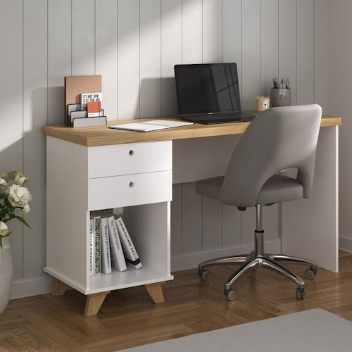 Escrivaninha de Estudos Mesa Office com Gavetas Sky Olmo/Branco - Escrivaninha de Estudos Mesa Office com Gavetas Sky