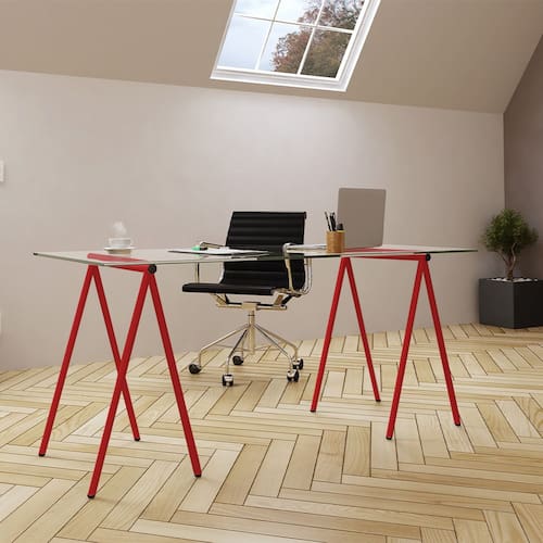 Escrivaninha De Vidro Itaim Cavalete Base Ferro Vermelho Com a Mesa Itaim seu escritório ficará muito mais moderno. Trazemos produtos com a máxima qualidade em materiais e com o design inovador.