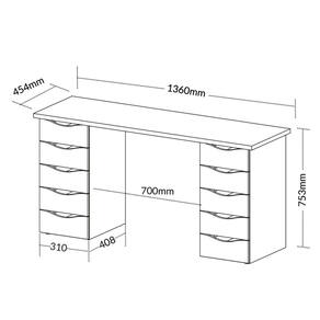 Organize-se para maior produtividade com a Escrivaninha Due, projetada para conciliar elegância, requinte e conforto. Sua forma versátil faz desta mesa perfeita para ser usada em diversos ambientes com estilos diferentes, como em escritório, home office ou quarto, sempre dando um toque especial. 10 amplas gavetas garantem um produto útil e multifuncional, e seu design elegante deixa qualquer ambiente sofisticado e de alto padrão. O espaçoso tampo garante muito conforto e comodidade, para você trabalhar ou estudar com amplo espaço para seu computador, notebook, papéis, livros e outros materiais. O revestimento é feito em BP, proporcionando resistência a impactos, atrito e umidade, certificando uma maior durabilidade ao móvel. O produto perfeito para aumentar o bem estar e a eficiência no trabalho, já que possui o tamanho ideal para maior conforto e produtividade!