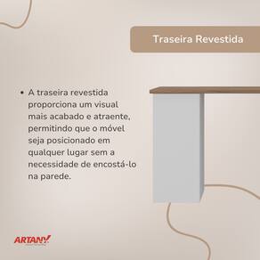 - Tampo em MDP 25mm; - Estrutura em MDP 15mm; - Fundo das gavetas e do gaveteiro em MDF 3mm; - Revestimento em BP; - Gavetas com corrediças metálicas; - Sapatas com regulagem de altura