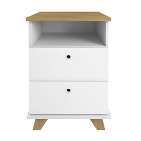 O gaveteiro é feito em MDP, contémi duas gavetas com corrediças metálicas e um nicho, facilitando a organização de objetos, celulares, livros