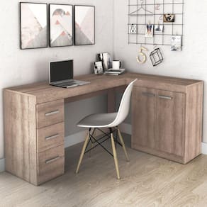 A Mesa de canto com 3 gavetas e 2 portas, MSM 446,da Movelbento é produzida a estrutura em MDP 15mm e costas em MDF 3 mm. Além de ser linda e muito funcional ela possui muito espaço interno para organizar seu escritório. Acabamento da Gaveta: Pintura UV Acabamento da Porta: Pintura UV Acabamento da Prateleira: Pintura UV Ambiente Principal: Escritório Complexidade da Montagem: Média: pode ser montado por mais de uma pessoa e/ou necessite de maior conhecimento para montagem Cor: Rústico Cor do Produto: Rústico Escala de Brilho: Fosco Escala de Brilho da Porta: Fosco Escala de Brilho da Prateleira: Fosco Formato: Em L Gaveta com Chave: Não Itens Inclusos: 1 Escrivaninha, Kit Ferragens e Manual de Montagem Largura Frontal: 156 cm Largura Lateral: 116,5 cm Manual de Montagem e Instalação: https://cdn2.madeiramadeira.com.br/atributo/movelbento/925872-msm-446.pdf Material da Gaveta: MDP Material da Porta: MDP Material da Prateleira: MDP Material Principal: MDP Necessita Montagem: Sim Origem do Produto: Nacional Peso: 43 kg Peso Máximo por Gaveta: 3 kg Peso Máximo por Prateleira: 7 kg Possui Passa Cabos: 01 Possui Pés: Não Possui Porta Objetos: Não Possui Portas: 02 Possui Prateleiras: 01 Possui Suporte para Teclado: Não Recomendações de Uso, Manutenção e Limpeza: Antes de limpar recomenda-se que seja retirada toda a poeira com um espanador ou flanela seca para evitar riscos na superfície, após utilize um pano umido em água, macio e limpo. Sapatas Niveladoras: Não Sistema de Montagem: Parafuso, Cavilha e Minifix Suporta Até (kg): 40 kg Tamanho: Tipo de Corrediça da Gaveta: Metálica Simples Tipo de Dobradiça/Corrediça da Porta: Aço Tipo de Puxador da Gaveta: Externo Tipo de Puxador da Porta: Externo