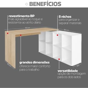 Escrivaninha em L Mesa Office 8 Nichos Nero II Carvalho/Branco - Escrivaninha Nero: Organização, Estilo e Produtividade para o Seu Espaço