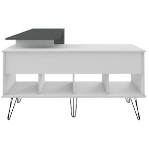 Organização inteligente: Prateleiras abertas e porta basculante para manter seus pertences organizados e ao alcance das mãos.