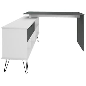 Escrivaninha em L Mesa Office com Nichos e Porta Dubai Branco/Grafito - Escrivaninha Dubai: Estilo Industrial e Design Funcional