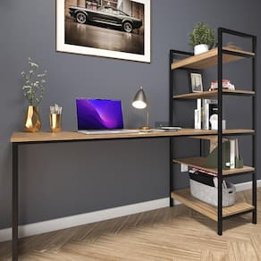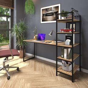 Escrivaninha Com Estante 4 Prateleiras Integradas Mesa Lamina Com Preto Estrutura:
