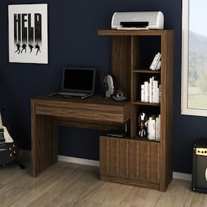 Escrivaninha Estante com 2 Portas e Gaveta Multimóveis CR25040 Nogal - Marrom