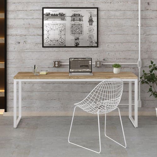 A Linha Kuadra tem seu design com inspiração no estilo industrial, que remete muito a decoração usada nos Lofts das grandes metrópoles nos anos 60 e 70. Harmonizando o metal e os tons de madeira, foram projetados móveis versáteis e com estilo, que podem compor ambientes flexíveis cheios de personalidade, perfeitos para você decorar sua casa ou seu trabalho, tendo um resultado que caminha do estilo rústico ao moderno. Acabamento dos Pés: Pintura Acompanha Manual de Instalação: Sim Ambiente Principal: Escritório Complexidade da Montagem: Baixa: pode ser montado por uma pessoa sozinha Cor: Carvalho / Est.Branca Cor da Base: Branco Cor do Produto: Carvalho / Est.Branca Cor do Tampo: Marrom Cor Interna: Carvalho Escala de Brilho: Fosco Espessura do Tampo: 30 Formato: Retangular Itens Inclusos: 1 Mesa, Kit Ferragens e Manual de Montagem Manual de Montagem e Instalação: https://cdn2.madeiramadeira.com.br/atributo/compace-dalex/1710697-manual-novo-mesa-kuadra-180.pdf Material da Estrutura: Aço Material do Tampo: MDP Material dos Pés: Aço Material Principal: MDP Necessita Montagem: Sim Origem do Produto: Nacional Pés com Regulagem de Altura: Sim Peso: 24.83 Possui Passa Cabos: Não Possui Portas: Não Possui Prateleiras: Não Possui Suporte para Teclado: Não Recomendações de Uso, Manutenção e Limpeza: Para a limpeza, utilize flanela seca ou pano macio levemente umedecido em água. Utilize um pano seco em seguida. Evite contato com produtos químicos (solventes, thinner, acetona, etc) e não utilize nenhum tipo de esponja de aço. Sapatas Niveladoras: Sim Sistema de Montagem: Parafusos e sapatas reguláveis Suporta Até (kg): 40