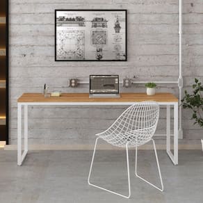 A Linha Kuadra tem seu design com inspiração no estilo industrial, que remete muito a decoração usada nos Lofts das grandes metrópoles nos anos 60 e 70. Harmonizando o metal e os tons de madeira, foram projetados móveis versáteis e com estilo, que podem compor ambientes flexíveis cheios de personalidade, perfeitos para você decorar sua casa ou seu trabalho, tendo um resultado que caminha do estilo rústico ao moderno. Acabamento dos Pés: Pintura Acompanha Manual de Instalação: Sim Ambiente Principal: Escritório Complexidade da Montagem: Baixa: pode ser montado por uma pessoa sozinha Cor: Lâmina Mel / Est.Branca Cor da Base: Branco Cor do Produto: Lâmina Mel / Est.Branca Cor do Tampo: Marrom Cor Interna: Lâmina Mel Escala de Brilho: Fosco Espessura do Tampo: 30 Formato: Retangular Itens Inclusos: 1 Mesa, Kit Ferragens e Manual de Montagem Manual de Montagem e Instalação: https://cdn2.madeiramadeira.com.br/atributo/compace-dalex/1710709-manual-novo-mesa-kuadra-180.pdf Material da Estrutura: Aço Material do Tampo: MDP Material dos Pés: Aço Material Principal: MDP Necessita Montagem: Sim Origem do Produto: Nacional Pés com Regulagem de Altura: Sim Peso: 24.83 Possui Passa Cabos: Não Possui Portas: Não Possui Prateleiras: Não Possui Suporte para Teclado: Não Recomendações de Uso, Manutenção e Limpeza: Para a limpeza, utilize flanela seca ou pano macio levemente umedecido em água. Utilize um pano seco em seguida. Evite contato com produtos químicos (solventes, thinner, acetona, etc) e não utilize nenhum tipo de esponja de aço. Sapatas Niveladoras: Sim Sistema de Montagem: Parafusos e sapatas reguláveis Suporta Até (kg): 40