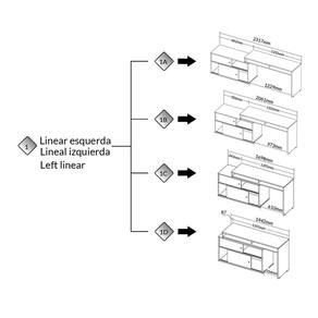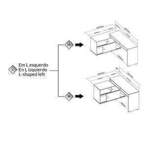 "Tamponamento em MDP 18 mm de espessura com fita de borda ABS 1 mm de espessura; – Estrutura em MDP 15 mm de espessura com fita de borda ABS 0,45 mm de espessura; – Duas portas de correr com kit roldana e perfis em metal; – Puxadores plásticos embutidos nas portas; – Doze opções de posição da mesa que podem ser escolhidas durante a montagem; – Sapatas plásticas com regulagem de altura; – Traseira em MDF 6 mm revestida dos dois lados; – Fixação com parafuso, tambor e minifix."