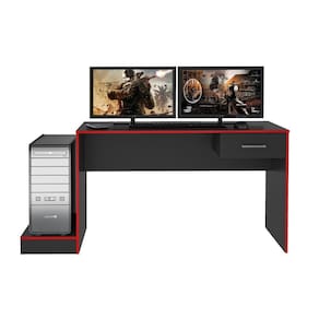 Você, Jogador de Gamer, que gosta de mergulhar no mundo fantástico dos games, passar de fases, subir de níveis ou bater recordes precisa de um lugar para seu refúgio para desbravar suas aventuras e vencer desafios. Por isso criamos a nova mesa GAMER. Com um visual diferenciado e inovador, criada cuidadosamente para unir conforto com modernidade. Ela tem um espaço para até dois monitores com um espaço central da mesa que não atrapalhe os joelhos e pés e uma gaveta para guardar objetos. Ela vem com um suporte elevado para o CPU se adaptando ao seu ambiente; E evitando assim contato direto com o piso. A mesa GAMER é diferenciada e fantástica! Produzida em MDF e MDP de 15mm. Com pintura UV texturizada acetinada, sua manutenção fica muito mais fácil.