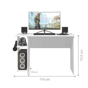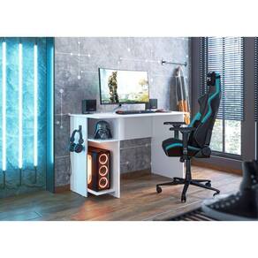 A Mesa Gamer veio trazer mais conforto para suas horas de jogatina e diversão. O produto contém Suporte para Gabinete. Produzido em MDP 15 mm. Informações do produto: Altura: 74,5 cm Largura: 114 cm Comprimento: 54 cm Informações adicionais: Gaveta: Não Cor: Branco Nichos: Sim (2) Porta: Não Suporte para Gabinete: Sim Itens inclusos: 01 Mesa Gamer. Kit completo para montagem, manual detalhado de instruções para montagem. Garantia: 3 meses contra defeito de fabricação. Informações complementares: - Fotos meramente ilustrativas do produto no ambiente. - Os objetos que ambientam as fotos não acompanham o produto; - Verificar descrição e tamanho do produto antes da compra. - Avaliar a mercadoria no ato do recebimento e recusar em caso de divergência. - Limpar com flanela ou pano macio seco, não aplicar produtos abrasivos, desengordurantes, álcool ou solvente. Não expor o produto diretamente à luz solar e à umidade. * Sugerimos a contratação de um montador profissional para a montagem do produto. Não nos responsabilizamos por danos causados no ato da montagem. * Não nos responsabilizamos pela montagem e desmontagem do produto, assim como os custos gerados nestas situações. * Não nos responsabilizamos por subir escadas, corredores e elevadores ou guincho em apartamentos.