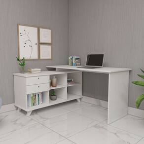 - Tampo da mesa e do balcão em MDP 18mm - Estrutura em MDP 15mm - Gavetas com corrediças metálicas - Pés com feltro autoadesivo para proteção do piso - Lateral com sapatas plásticas - Acabamento BP - Bordas em PVC - Montagem para o lado esquerdo ou direito