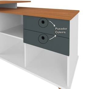 Trabalhe e estude de maneira organizada e produtiva com esta linda escrivaninha, perfeita para você transformar o ambiente em um local agradável e charmoso. Seu belo design retrô é proporcionado pelos pés angulados, detalhe que faz toda a diferença na aparência final. É muito versátil e tem estrutura flexível, podendo ser montado para o lado esquerdo ou direito, se adaptando ao seu espaço. Os nichos e as gavetas são ideais para manter o local organizado, já que guardam todos os seus objetos, livros e materiais com elegância. O amplo tampo garante muito conforto e comodidade, para você trabalhar ou estudar com muito espaço, seja em seu quarto, Home Office, ou como uma mesa de escritório. Materiais e o revestimento de alta qualidade proporcionam a beleza e alta qualidade que sua casa merece!