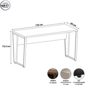 Produto dentro das normas para escritório, pois possui as bordas com os cantos arredondados (NR 17)