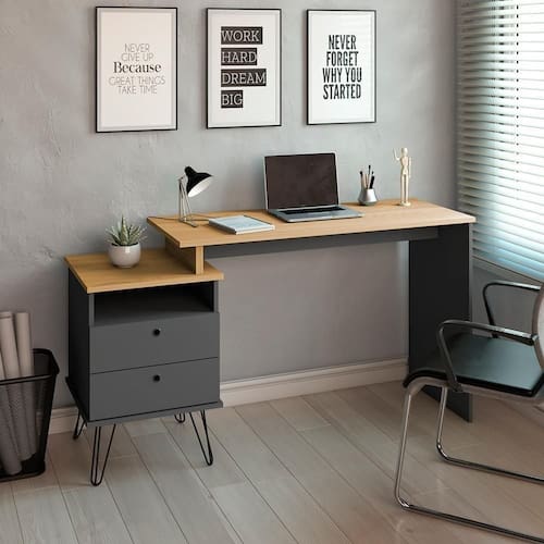 Escrivaninha Industrial Lowa Olmo Grafito - Cinza