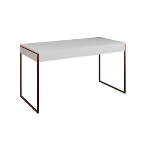 Tipo: Escrivaninha Modelo: Malta Base Ferro: Cobre Cor Tampo: Branco Demais objetos que compõem a imagem ambientada não acompanham o produto