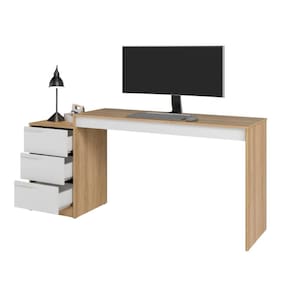 Escrivaninha Infantil 3 Gavetas em MDP Lamina Branco. Deixe seu quarto ainda mais organizado e produtivo com a escrivaninha e gaveteiro BDI 98-362. Produzido em MDP que proporciona uma maior durabilidade para o seu móvel. A-78,5 X L-177,5 X P-45 Peso bruto: 26,35kg LIMPEZA: Limpar utilizando apenas pano umedecido com água, nunca utilizar abrasivos ou esponjas de aço. OBSERVAÇÕES: -Este produto é vendido em 01 Volume embalado em caixa de papelão com isopor nas laterais e revestido com plástico termoencolhível. -Não expor o móvel a fontes de calor ou de umidade. -As imagens indicam uma sugestão e são apenas ilustrativas, os objetos decorativo