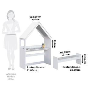 Transforme o quarto do seu filho(a) em um espaço mágico de aprendizado! Com design lúdico de casinha é perfeita para o método Montessori, pois estimula a autonomia, criatividade e organização. São móveis produzidos em MDF com acabamento em UV atóxico e com bordas arredondadas, garantindo a durabilidade, qualidade e segurança. No momento da montagem vc também pode optar pela montagem da Ecrivaninha como cabeceira e o banco como recamier (calçadeira para cama). Um investimento no futuro e na felicidade do seu filho (a). Acabamento da Cadeira/Banco: Pintura UV Acabamento da Mesa: Pintura UV Acompanha Manual de Instalação: Sim Almofada do encosto: Não Possui Altura do Conjunto: 141 cm Ambiente Principal: Quarto Infantil Cadeira/Banco estofada: Não Cadeira/Banco suporta até: 90 kg codigo_ean: 7900288191854 Complexidade da Montagem: Baixa: pode ser montado por uma pessoa sozinha Configuração do Conjunto: Mesa com Bancos Cor: Branco Brilho Cor da Base: Branco Cor das Cadeiras: Branco Cor do Produto: Branco Brilho Cor do Tampo: Branco Cor Secundária: Branco Design da Base: Retangular Escala de Brilho: Brilhante Espessura do Tampo: 12 mm Estrutura do Assento: MDF Formato do Tampo: Retangular Informações Complementares: Suporta uso com cama de largura máxima até 96cm. Pintura atóxica. Itens Inclusos: 1 Mesa, 1 Banco, Kit Ferragens e Manual de Montagem Largura do Conjunto: 102,5 cm Linha ou Coleção: Petra Manual de Montagem e Instalação: https://product-hub-prd.madeiramadeira.com.br/208887227/documents/763fd84d-f23d-4a32-8b61-b881bab61dbe3050220281917515723639506.pdf Marca: Espresso Móveis Material da Base da Mesa: MDF Material da Estrutura da Cadeira: MDF Material do Tampo: MDF Material Principal: MDF Material Principal das Cadeiras/Bancos: MDF Medida da Cadeira/Banco (A x L x P): 33,50 x 95,40 x 25,60 Medida da Mesa (A x L x P): 141 x 102,5 x 41,60 Medida do Tampo (L x C x E): 38,40 x 96 x 1,2 Mesa Dobrável: Não Mesa Extensível: Não Mesa suporta até: 25 kg Montagem Flex: Sim, pode ser montada como Cabeceira e Banco ou Escrivaninha e Banco. Necessita Montagem: Sim Origem do Produto: Nacional Peso da Cadeira/Banco: 5 kg Peso da Mesa: 17 kg Possui Apoio para Braços: Não Possui Apoio Para os Pés: Não Possui Prateleiras: Sim Possui Rodízio: Não Possui Suporte Giratório: Não Possui Vidro: Não Profundidade do Conjunto: 41,6 cm Quantidade de Cadeiras: 1 Recomendações de Uso, Manutenção e Limpeza: Para limpeza utilizar somente pano limpo e macio, ligeiramente umedecido em água (apenas o bastante para remover a poeira), seguido de um pano seco. Sistema de Montagem: Parafusos e e acessórios plásticos Tipo de Assento: Fixo Tipo de Encosto: Não Possui