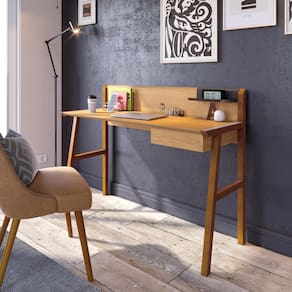 A Imcal Móveis vem trazendo uma nova linha de produtos com mais qualidade para sua casa, dentre eles essa linda Escrivaninha JOB com design moderno que irá agregar mais charme e beleza para seu ambiente. Ela conta com estrutura em MDF e pés em madeira maciça, proporcionando maior durabilidade ao produto. Para melhorar ainda mais, ela acompanha porta objetos no tampo e prateleira em aço, ideal para organização de seus objetos.