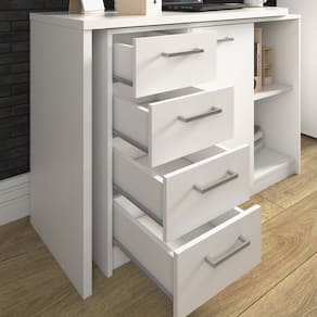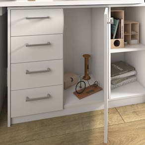 Trabalhe e estude de maneira organizada e moderna com a Mesa Logan, perfeita para você que pretende transformar qualquer ambiente em um local agradável e sofisticado. Com design versátil e estrutura flexível, este produto pode ser um balcão compacto, uma mesa em L ou também uma bela escrivaninha. O espaçoso tampo garante muito conforto e comodidade, enquanto as prateleiras e as gavetas são ideais para manter o local organizado, já que proporcionam amplo espaço para guardar inúmeras coisas. O revestimento é feito em BP e as bordas são de PVC, proporcionando resistência a impactos, atrito e umidade, certificando uma maior durabilidade ao móvel. Ean: 7899805402941