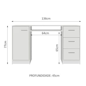 Medidas totais do móvel: 77 cm de altura x 136 cm de largura x 45 cm de profundidade.