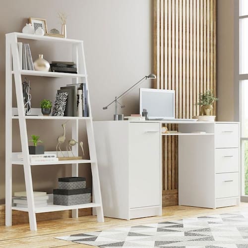 O conjunto da Escrivaninha Alaska + Estante Escada da Madesa vai deixar seu home office ou ambiente de estudos muito mais aconchegante e organizado.