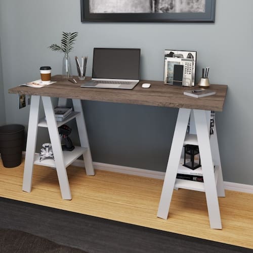 Organize seu home office com estilo usando a Escrivaninha MB1034 Movelbento. Com design moderno e estrutura leve, essa mesa cavalete traz funcionalidade e elegância ao ambiente de trabalho ou estudo. O tampo em MDP de 25 mm oferece alta resistência e amplo espaço para notebook, livros e acessórios. Conta com 4 prateleiras laterais ideais para organizar documentos, objetos decorativos e materiais do dia a dia. Os pés tipo cavalete garantem estabilidade e um visual contemporâneo que amplia o ambiente. Fabricada com estrutura em MDP 15 mm e fundo em MDF 3 mm, a MB1034 combina durabilidade, funcionalidade e design inteligente. Uma excelente escolha para quem busca uma mesa de estudo ou trabalho funcional e bonita para quartos, escritórios ou home office.