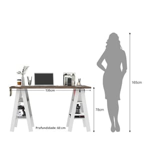 Características: 4 Prateleiras laterais para organização Design despojado e funcional Estrutura em MDP 15 mm Fundo em MDF 3 mm Ideal para home office, quarto ou escritório Pés tipo cavalete, visual moderno e leve Tampo em MDP 25 mm Visual leve e funcional
