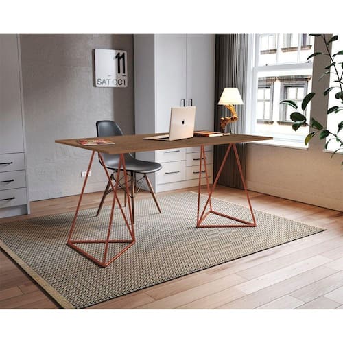 Escrivaninha Mesa Bela Vista Cobre E Tampo ImbuiaCom a escrivaninha mesa bela vista a seu escritório ficará muito mais moderno. Contendo um produto com a máxima qualidade em materiais e com o design inovador.Especiações Técnicas:Modelo: Bela VistaCor Base: CobreCor Tampo: ImbuiaMaterial Tampo: Madeira MDPMaterial Base: Produzido em Aço CarbonoDescrição do Tamanho: Altura: 78 cmLargura: 140 cmProfundidade: 80 cm ATENÇÃOOs objetos que ambientam as fotos não acompanham o produto.Verifique as dimensões do produto e certifique-se que o percurso que ele fará até o local de uso permite sua passagem.Fique atento, nossas cores podem sofrer alterações dependendo do seu monitor.Escrivaninha Mesa Bela Vista Cobre e Tampo Imbuia