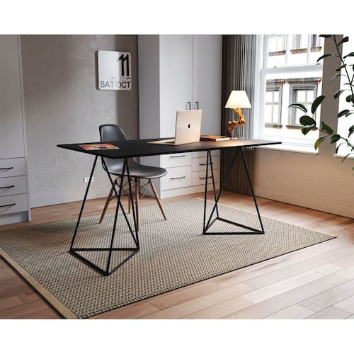 Modelo: Bela Vista Cor Base: Preto Cor Tampo: Preto Material Tampo: Madeira MDP Material Base: Produzido em Aço Carbono