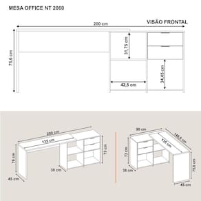 A Escrivaninha Mesa Computador Branca Reta ou em L 2 Gavetas Top NT2060 Notável 75x200x45 é um móvel completo que vai te auxiliar nas atividades do home office ou estudos. Com ela, você tem diversas possibilidades de montagem: de canto, montada reta, com o nicho para o lado direito ou esquerdo e você também pode escolher em que lado colocar as gavetas! O tampo de 25 mm é super espaçoso para você organizar itens essenciais ao dia a dia, e as gavetas possuem corrediças metálicas para guardar documentos e demais objetos. Um móvel moderno que vai atender as suas necessidades!